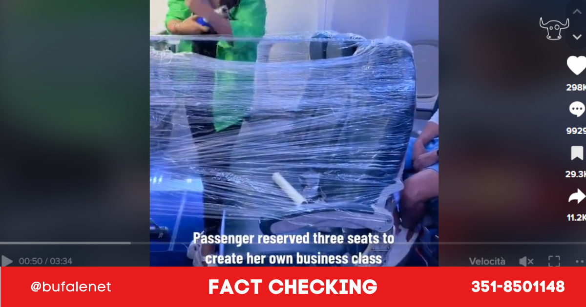 Ci segnalano i nostri contatti il video di una passeggera che crea una sua business class personale col premiato metodo “Art Attack”. Ovvero prenotando tre posti e delimitandoli con un rotolo di plastica alimentare.