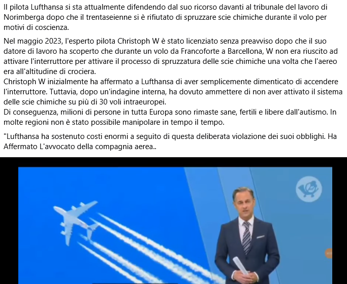 “Il pilota Lufthansa si difende in tribunale per non aver sparso scie chimiche”: ma era solo satira
