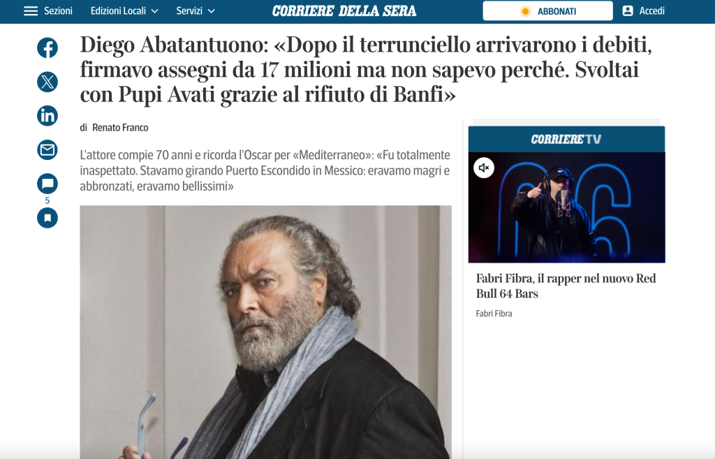 Il post di Abatantuono schifato per le false accuse ai novax è un falso (dei novax)