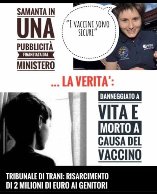 Il risarcimento di 2 milioni di euro per i danni da vaccino in un caso di Trani, gli attacchi contro Samantha Cristoforetti