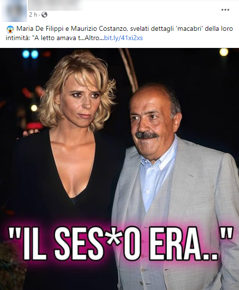 Accade il 28 febbraio (qui il post archiviato), con tanto di foto della coppia e messaggio in calce: “Maria De Filippi e Maurizio Costanzo, svelati dettagli ‘macabri’ della loro intimità: “A letto amava t…”.