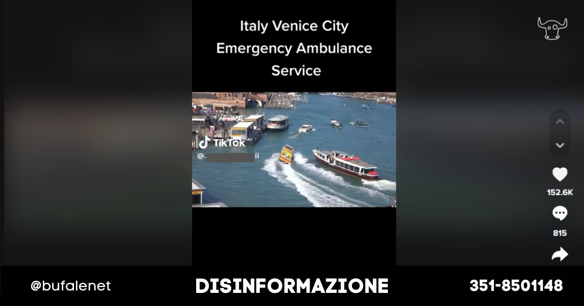 Il video dell’ambulanza a Venezia su TikTok è velocizzato: a volte bastano solo piccole alterazioni per esaltare la viralità di un contenuto e renderlo più cliccabile. Ci segnalano infatti i nostri contatti il video di un’ambulanza che sfreccia a tutta velocità per i canali di Venezia.
