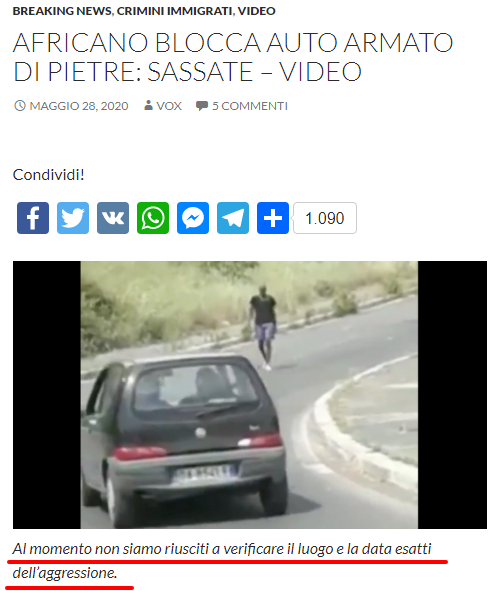 Il video è stato ripreso anche dal noto sito clickbait Stopcensura che fa riferimento all’account Twitter Radio Savana che, ancora, in un commento scrive che i fatti sono successi a Eur Torrino, quartiere della Capitale. Gli stessi autori di VoxNews, nel riportare il video, scrivono di non avere informazioni circa il luogo e la data delle riprese.