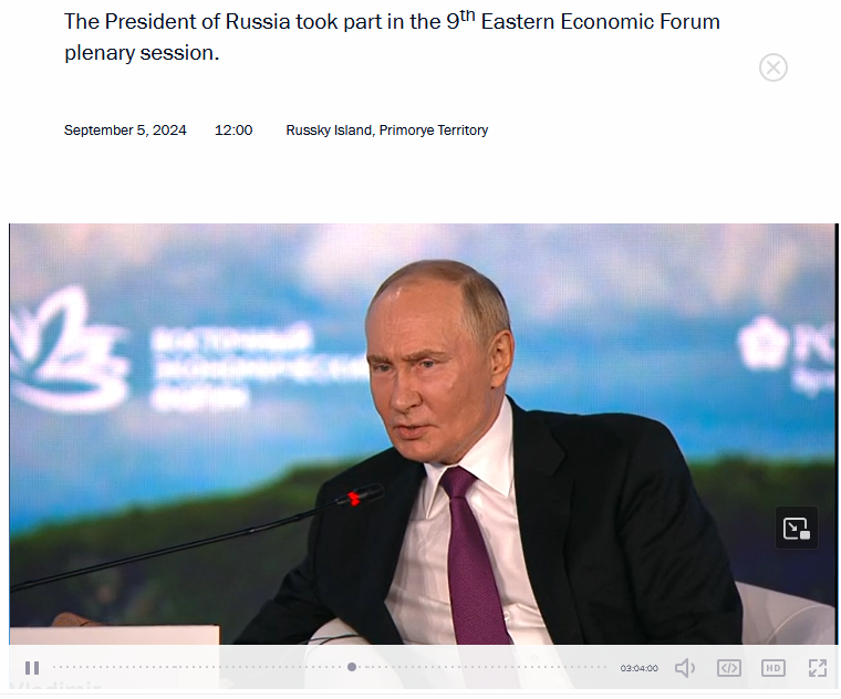 Enfasi sul nove settembre: potremmo chiudere comodaente il fact checking che la presunta risposta, pubblicata l’indomani sui social, proviene dal Forum Economico di Vladivostock del 5 Settembre, ben quattro giorni prima.