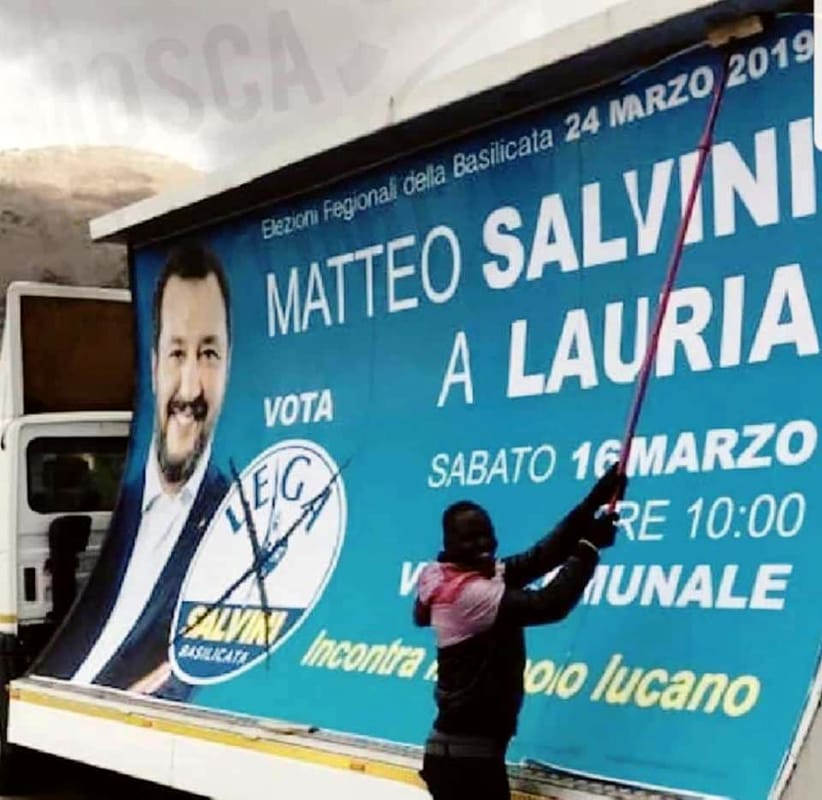 Immigrato affigge manifesto per l’arrivo di Salvini: la foto fa il giro del web