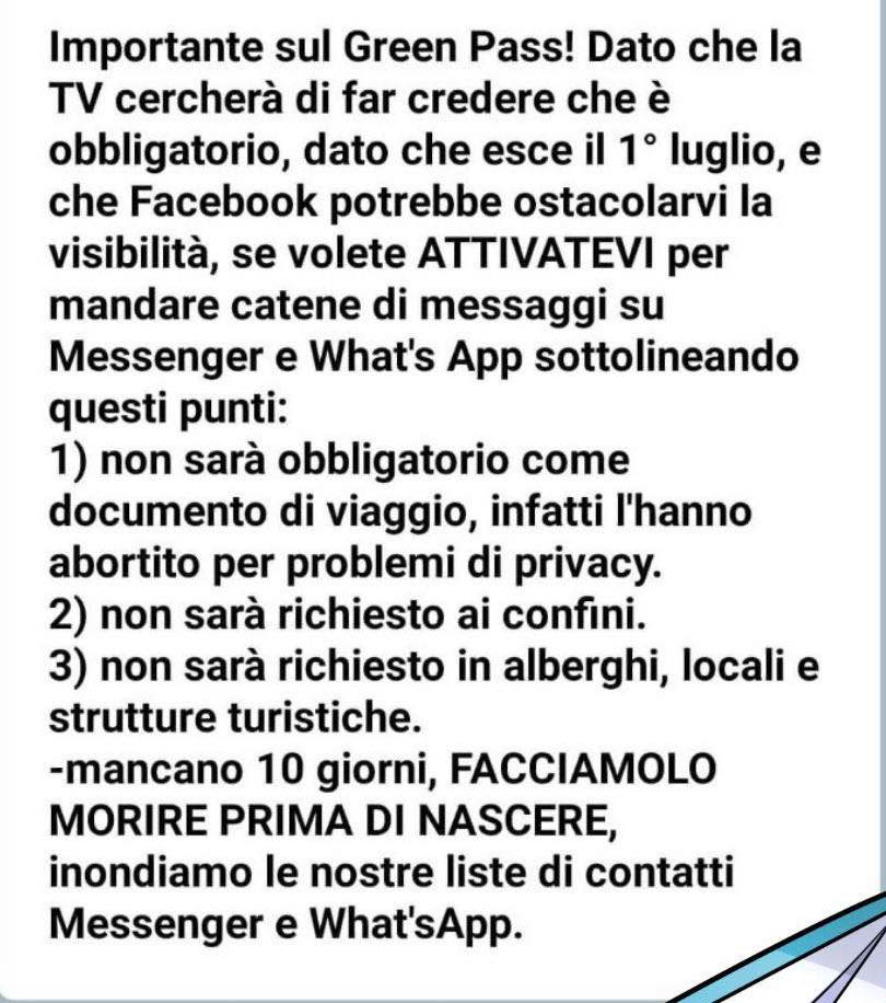Ci segnalano i nostri contatti una condivisione virale titolata “importante sul Green Pass”.
