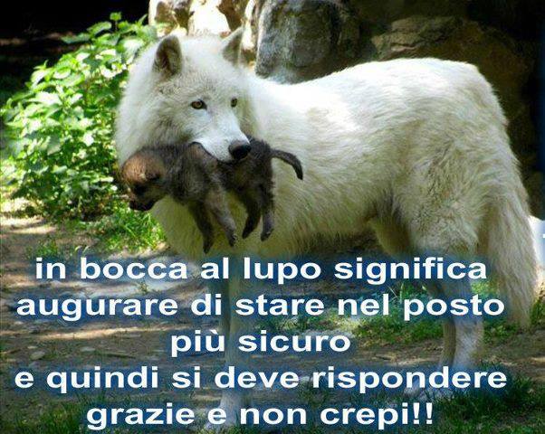 Se quindi l’augurio di incontrare il lupo fosse stato positivo, dalle origini avremmo avuto l’effetto opposto, con generazioni di Italiani pronti ad augurare il bene perché le forze oscure della scaramanzia facessero del loro peggio negando salute e sicurezza ai loro congiunti: ad oggi, essendo l’esperienza del cacciatore meno ubiquitaria, il proverbio in bocca al lupo! viene usato, per antifrasi, come modo di dire a qualcuno in procinto di una grande impresa di cacciarsi nei guai e fallire, come modo per le “forze occulte all’ascolto” di essere tratte in inganno, credere che il tuo vivo desiderio sia vedere il tuo congiunto fallire ed attivarsi per garantirgli successo e fortuna e farti così un “dispetto”.