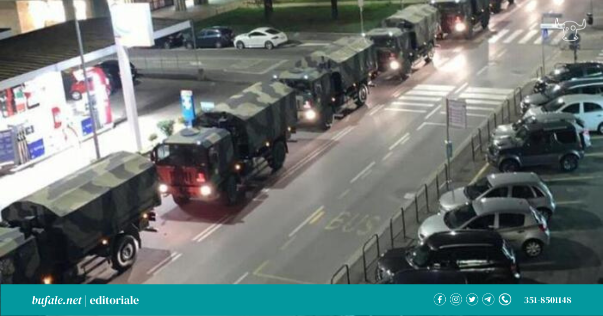 Inchiesta COVID19: i notutto esultano (per le ragioni sbagliate). La colonna di camion militari carichi di bare lascia Bergamo, 19 marzo 2020.
