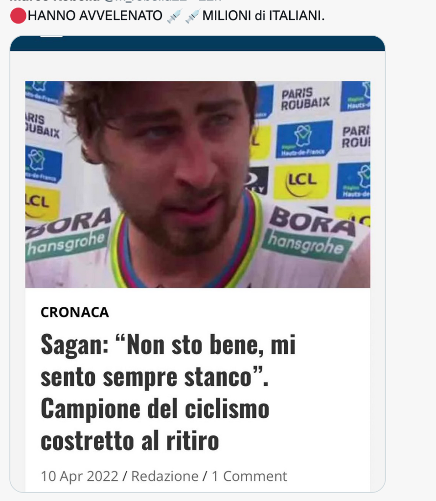 Il ritiro di Sagan ha mandato in sollucchero il popolo dei “nessuna correlazione”: anche questa volta, senza effettivamente che sia colpa del vaccino.