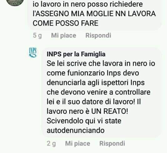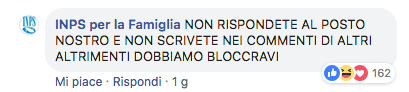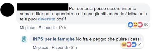 Alcuni post, come le spasmodiche richieste di smetterla di accavallarsi e rissare nei commenti, vengono effettivamente dalla pagina INPS per le famiglie