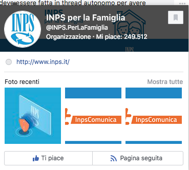 Potrete sempre riconoscere la vera pagina INPS per la Famiglia dalla spunta grigia vicino al nome