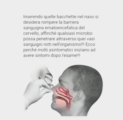 Partiamo dall’insieme di fallacie che è questo testo. Ma solo perché per il fatto che “bucare la barriera ematoencefalica col tampone” è un errore da matita blu ne abbiamo parlato più volte in un articolo che richiameremo