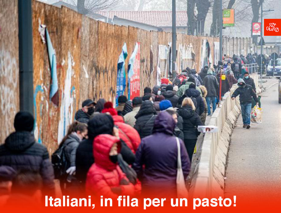 Italiani in fila per un pasto e migranti ospiti negli hotel