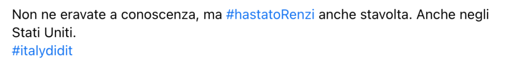 Non ne eravate a conoscenza, ma #hastatoRenzi anche stavolta. Anche negli Stati Uniti.