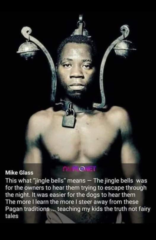 Questo è ciò che significa “jingle bells” — I ‘jingle bells’ servivano ai proprietari per sentirli mentre cercavano di scappare durante la notte. Era più facile anche per i cani. Più imparo e più mi allontano da queste tradizioni pagane… insegnando ai miei figli la verità, non le favole.
