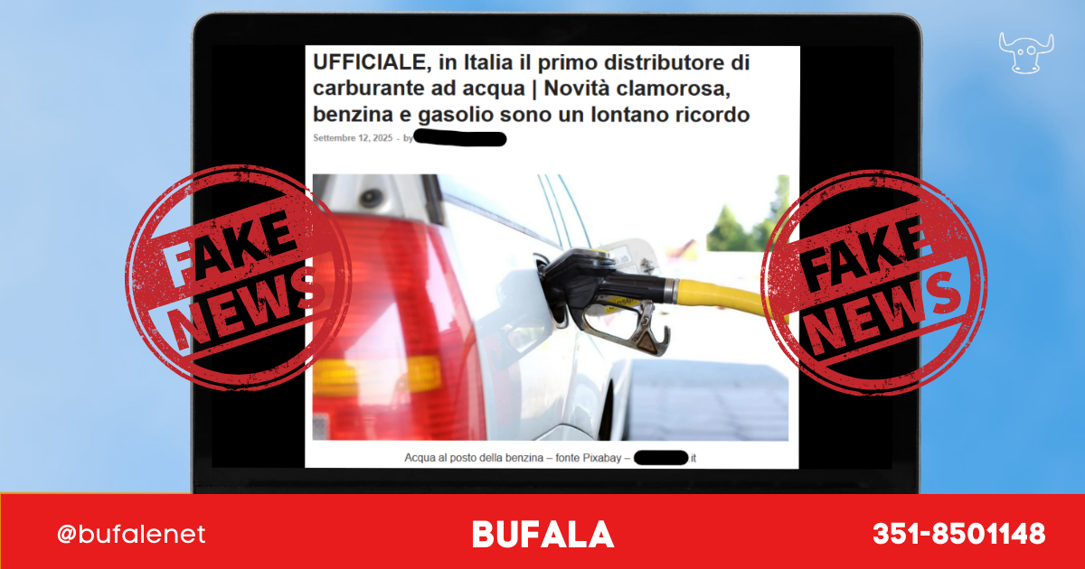 Ci rincresce per il povero automobilista, ma un benzinaio che per imperizia o malizia vende diesel “annacquato” non può essere considerato “il primo distributore per auto ad acqua”, bensì uno sfortunato avvenimento per la vittima dell’occorso.