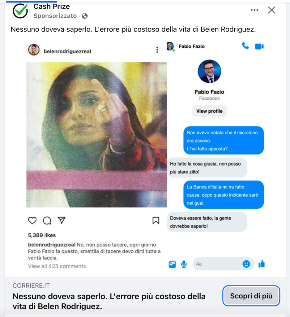 Facebook ha un enorme problema coi post sponsorizzati, come dimostra l’ad sponsorizzato di Belen Rodriguez denunciata da Bankitalia.