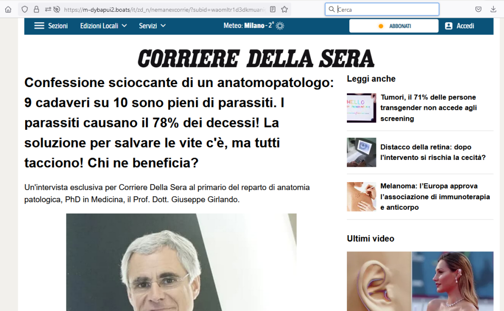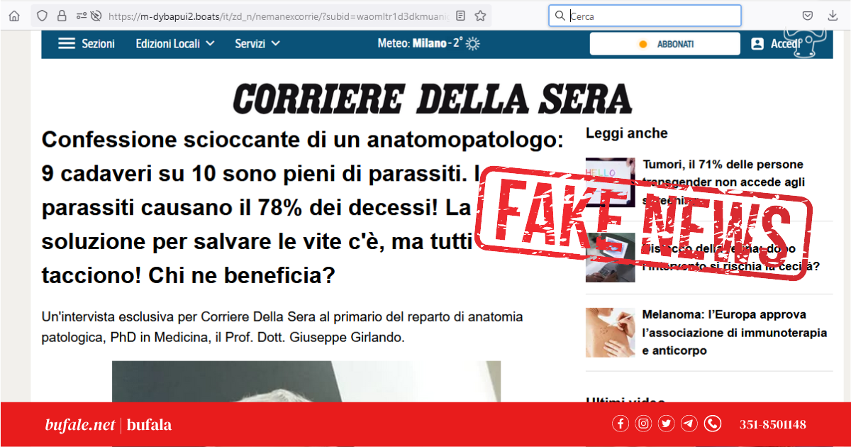 La “confessione scioccante dell’anatomopatologo” sul falso CorSera è un articolo inesistente pubblicato su una versione alterata del Corriere della Sera con contenuti allarmistici e artefatti.