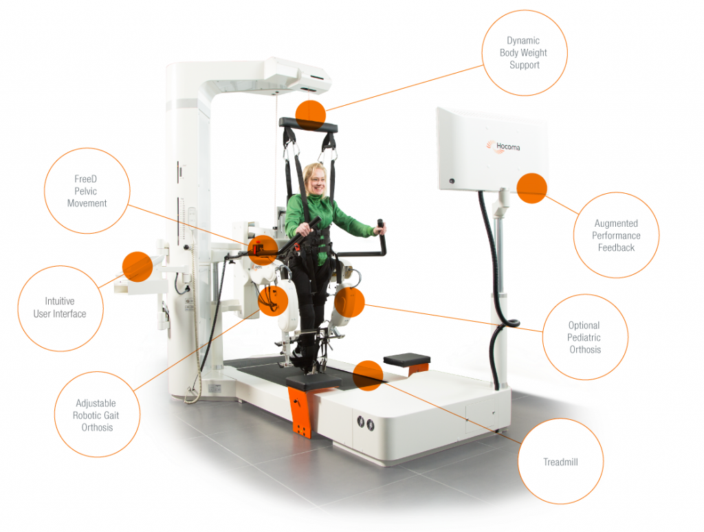 Per quanto riguarda Lokomat è possibile regolare l’intensità del passo, dalla velocità alla frequenza fino all’escursione articolare di anche e ginocchia. Per rendere l’allenamento più accattivante, sia Lokomat che Amadeo possono essere collegati ad uno schermo che, come in un video-gioco, trasmette un’immagine virtuale della persona che lo sta usando e la inserisce in scenari più coinvolgenti, quali un parco o un bosco, rendendo la riabilitazione più gradevole anche ai più piccoli.