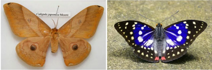 Per quanto ne sappiamo, non esiste alcuna specie conosciuta come “lepidottero gigante giapponese”, sebbene la gigantesca tignola giapponese e la farfalla imperatrice giapponese siano molto grandi. Ecco uno sguardo al baco da seta (a sinistra) e alla farfalla (a destra):