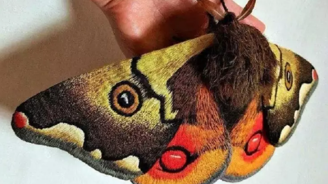 Sebbene questa immagine virale non mostri una falena imperatrice gigante giapponese, è stata ispirata da una vera specie di falena chiamata Hemileuca eglanterina, o tignola delle pecore. Okita ha fatto notare che mentre cerca di catturare il realismo della natura, aggiunge un po’ di immaginazione nei suoi pezzi.