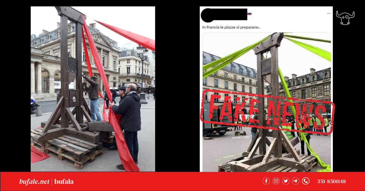 Ci segnalano i nostri contatti una improbabile “foto della ghigliottina in Francia”. Il collegamento è alle proteste contro la riforma delle pensioni, già oggetto di diverse fake news.