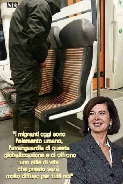 La foto dell’uomo che urina sul sedile e la frase di Laura Boldrini: “I migranti sono l’avanguardia”