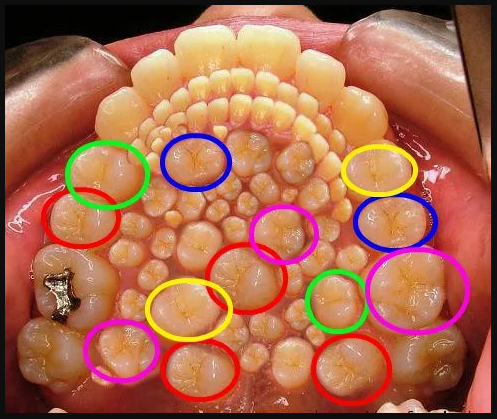Possono formarsi in diversi posti. Possono essere “mesiodens” (linea mediana), “paramolari” (ai lati dei molari) o “distomolari” (dietro i molari). Molto spesso sono mesiodens, che è a forma di piolo e cresce tra i primi due denti centrali.