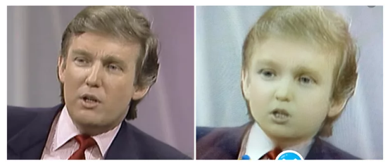 Sulla sinistra vediamo il presidente Trump durante un’apparizione all’Oprah Winfrey Showin 1988, e sulla destra c’è la stessa immagine di Trump, che all’epoca aveva circa 42 anni, dopo l’applicazione del filtro per bambini di Snapchat.