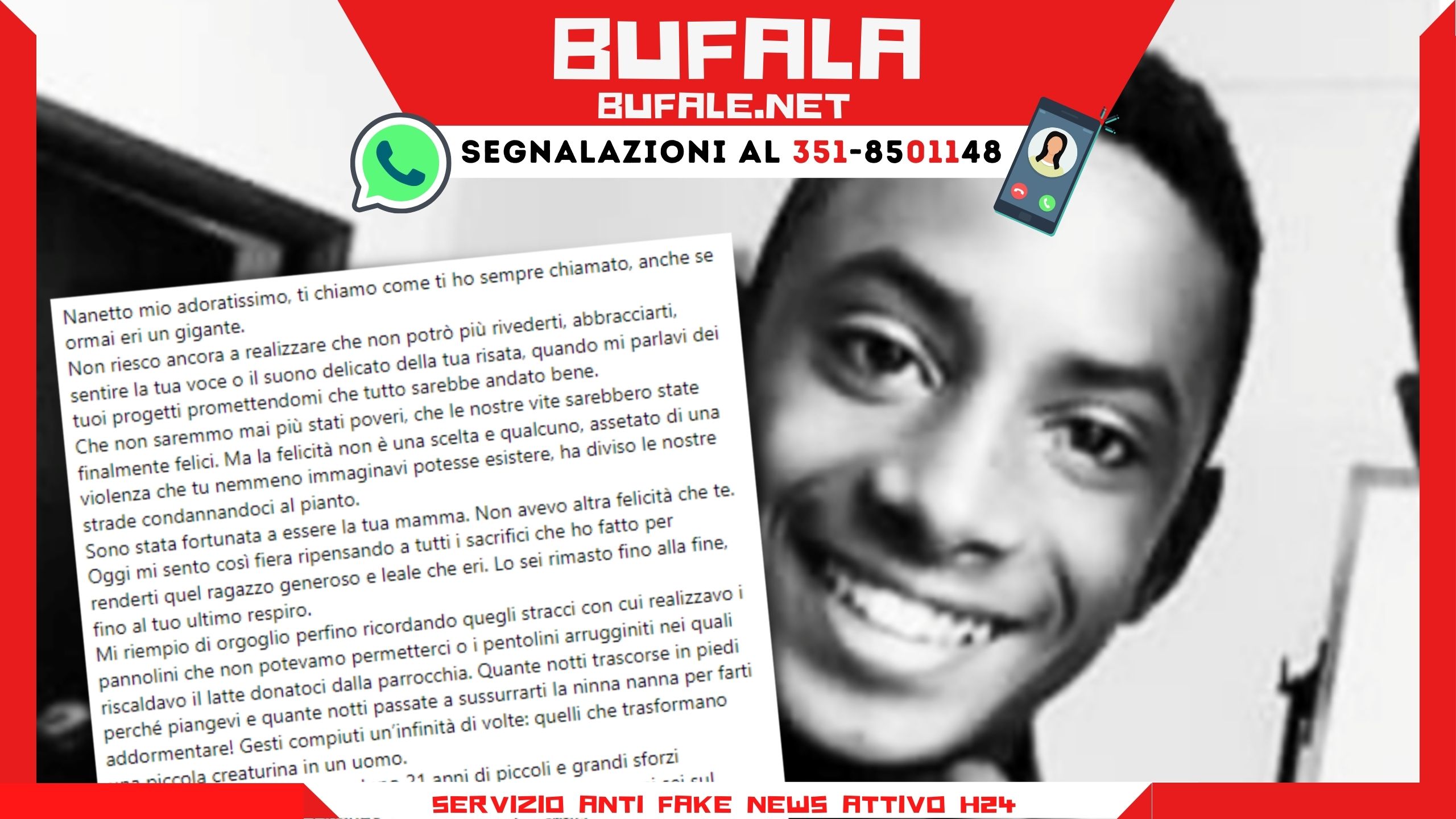 Il 6 luglio la pagina Facebook MamAfrica ha pubblicato una lettera attribuita alla madre di Willy Monteiro Duarte. Il post è comparso nei giorni in cui si era concluso il processo di primo grado, con la sentenza del 4 luglio trasmessa anche su Rai3 nel corso del programma Un Giorno in Pretura. La lettera ha un taglio molto sofferto e commovente, e sarebbero certamente le parole che una madre dedicherebbe al figlio ucciso barbaramente. Per questo si contano almeno 500 condivisioni.