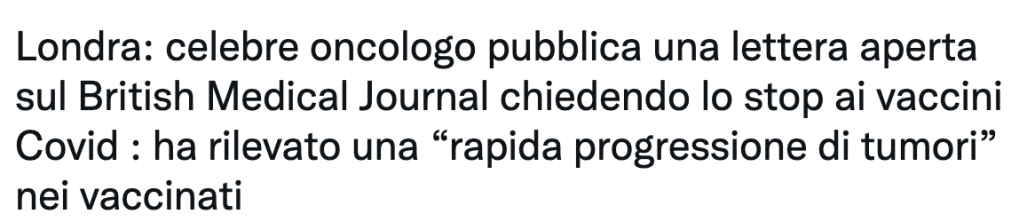 Ci segnalano il testo di un “famoso oncologo”, invero il dottor Daglish che in passato è stato già collegato ad un controverso articolo sulle origini non naturali del Coronavirus SARS-CoV-2 (teoria ampiamente sorpassata, ma non è questo il punto).