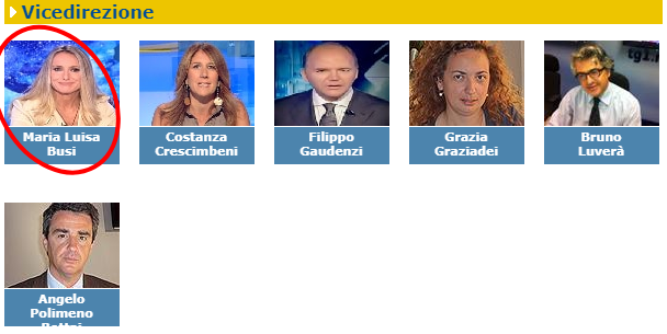 Maria Luisa Busi non ha lasciato il Tg1, bensì oggi risulta nella vicedirezione (qui la scheda ufficiale) insieme a Costanza Crescimbeni, Filippo Gaudenzi, Grazia Graziadei, Bruno Luverà e Angelo Polimeno Bottai.
