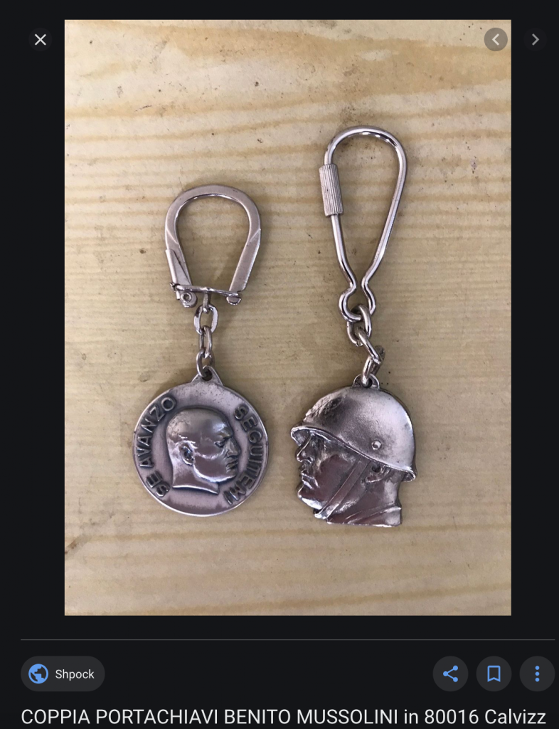Che guardacaso ha l’aspetto delle “spille e portachiavi di Mussolini” purtroppo reperibili su Internet