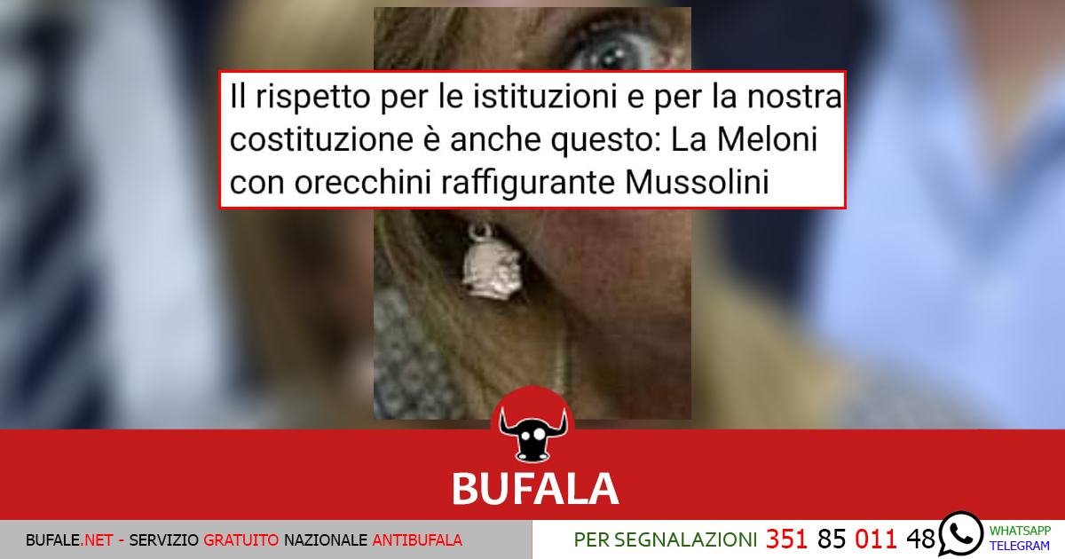 La Meloni con orecchini raffigurante Mussolini (sic!) – Le origini del Fake