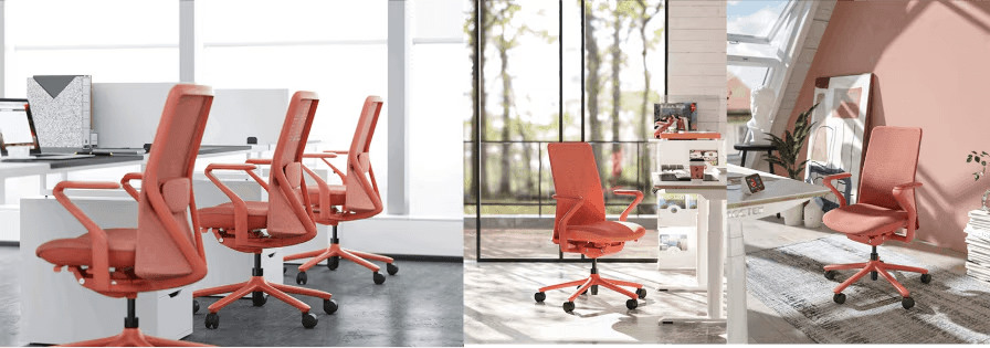 Il tessuto traspirante, che evita dopo un giorno di test la sensazione di “abiti appiccicati”, è disponibile nei colori rosso, grigio chiaro e nero, armonizzandosi così ad ogni ambiente.