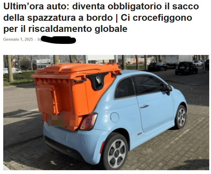 La “multa per il sacco della spazzatura a bordo obbligatorio” e l’alleanza notutto/bufalari del Codice della Strada