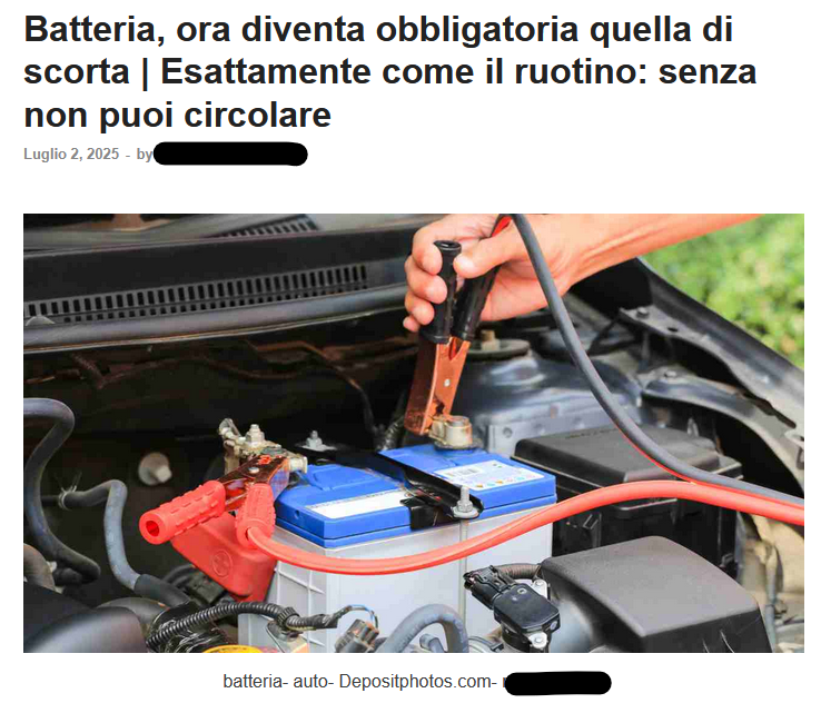 L’articolo inoltre comprende una bufala nella bufala, equiparando l’obbligo di batteria di scorta all’obbligo del ruotino.