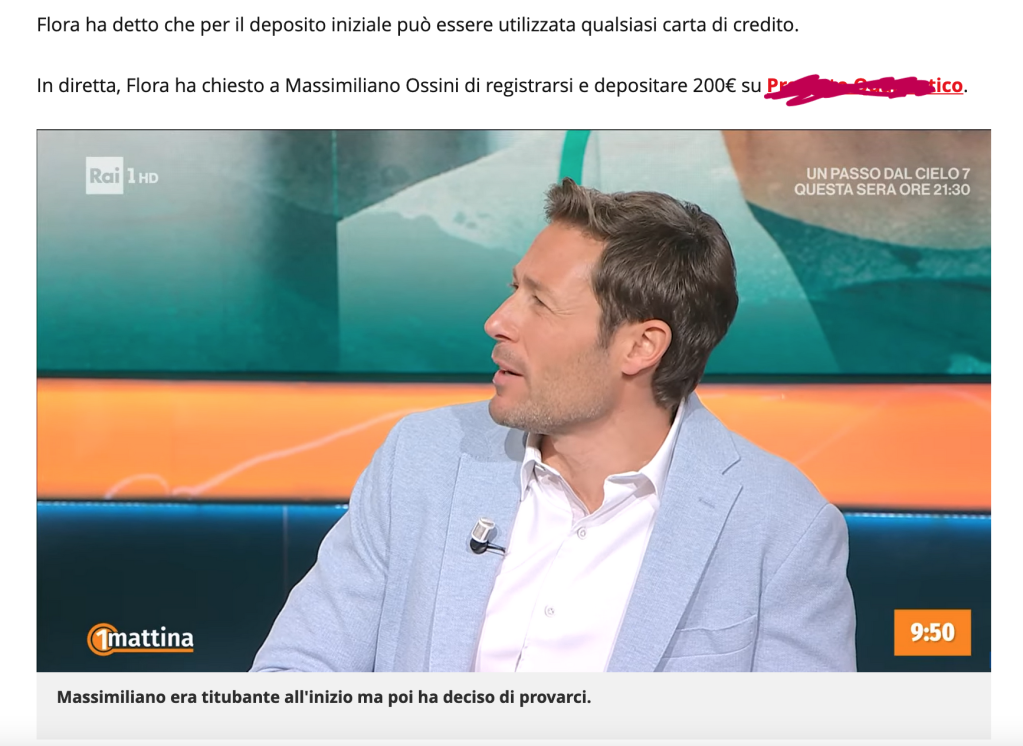 La storiella è quella che abbiamo visto una infinità di volte: una ragazza di “Rovigo” (vedremo perché tra virgolette) dal nome improbabile va ad Uno Mattina e propone al conduttore di registrarsi e versare 200Euro