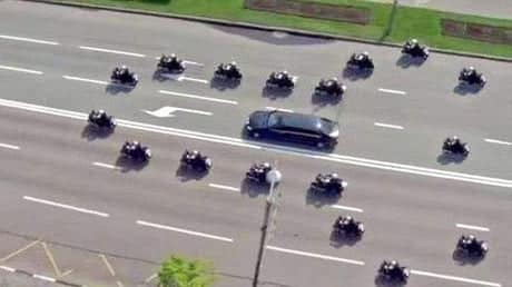 Una foto è stata pubblicata il 6 giugno e raffigurerebbe una veduta aerea della scorta del presidente americano Donald Trump, disposta su un’autostrada in modo tale da sembrare un gigantesco pene. Al centro ci sarebbe proprio l’auto del presidente, e il commento alla foto del post recita: «La scorta della polizia inglese all’auto di Trump».