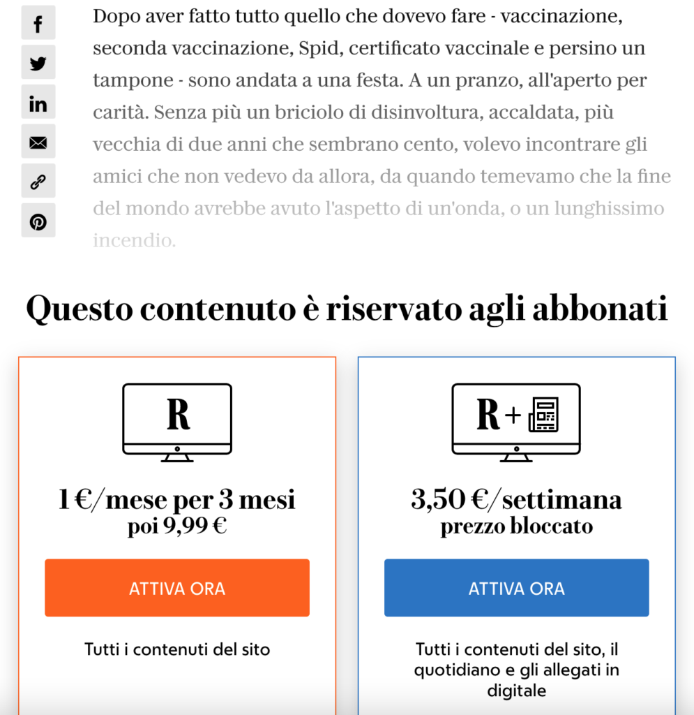 Insomma, per conoscere la “variante della paura” bisogna pagare, con tanto di tariffario per leggere un articolo del 17 Giugno spinto dalla paura.