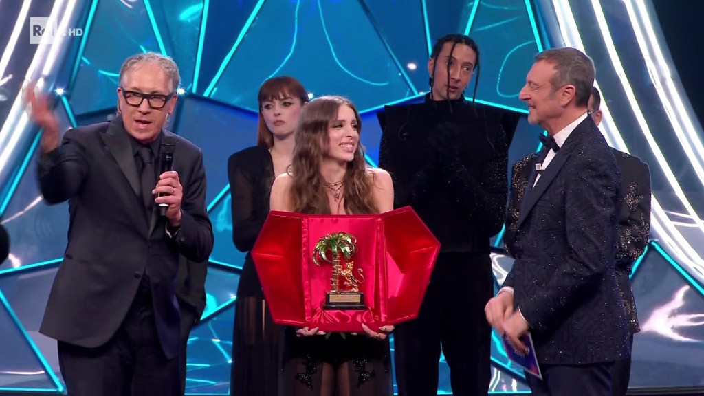 Per la cronaca il premio Mia Martini va a Loredana Berté, Angelina Mango incassa il premio Lucio Dalla e il premio per la migliore composizione musicale e il miglior testo va a Fiorella Mannoia.