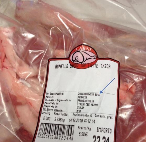 La spiegazione viene fornita da ConTAS (Consorzio per la Tutela dell’IGP Agnello di Sardegna) con un comunicato pubblicato sul sito ufficiale. Il consorzio riporta anche un altro caso, con un’etichetta posta su un “Agnello IGP Latte” mentre l’etichetta riporta la provenienza di una pancia bovina dal territorio francese: