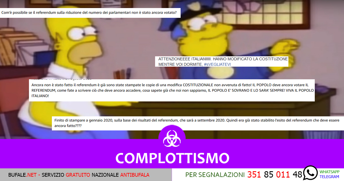 com’è possible che a gennaio 2020 sia stato stampato un testo aggiornato con il taglio dei parlamentari quando il referendum è a settembre? avete la sfera di cristallo? questa cosa è gravissima, da denunciare subito