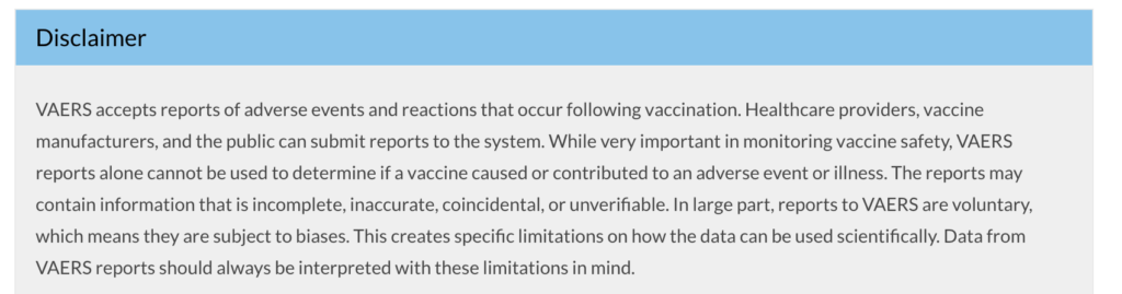 Il VAERS non ha gruppi di controllo, come i test in “doppio cieco”.