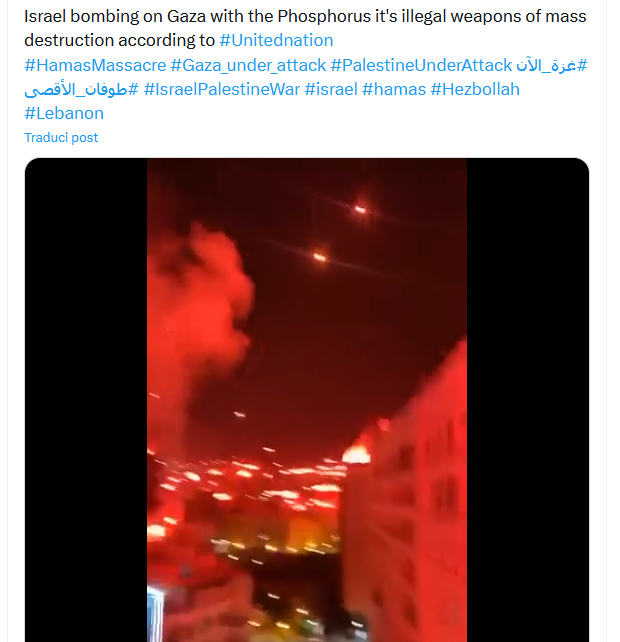 Un account di “geopolitica” accusa Israele di aver usato sulla striscia di Gaza delle armi al fosforo, quindi commettendo crimini di Guerra, quindi invocando l’intervento delle Nazioni Unite.