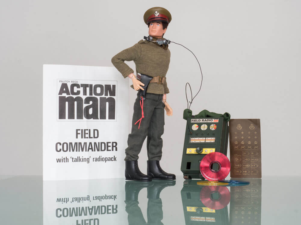 Un meccanismo simile veniva anche usato nei giocattoli dell’epoca: un Action Man del 1974, quando i bambolotti di Action Man erano di fatto la versione britannica dei G.I. Joe e non un avventuriero dai mille accessori, derivava il suo gimmick proprio dall’essere un soldato della Seconda Guerra Mondiale con una radio in spalla.