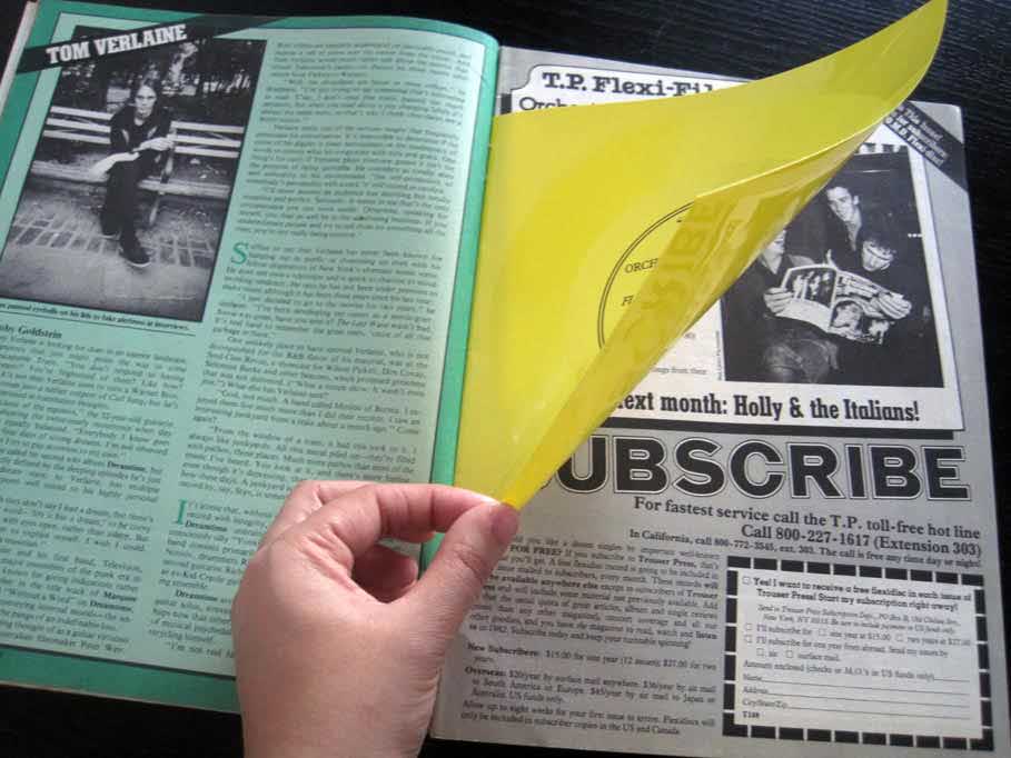 MAD Magazine pubblicava flexidisc con parodie, il National Geographic arricchiva enciclopedie naturali e storiche con registrazioni in flexidisc, di talché avresti potuto distaccare la pagina vicina a quella degli uccelli di cui stavi leggendo e udirne il richiamo, o avere una registrazione del funerale di Churchill da ascoltare mentre ne leggevi gli eventi, trasformando così un libro in un audiolibro se non un libro interattivo.
