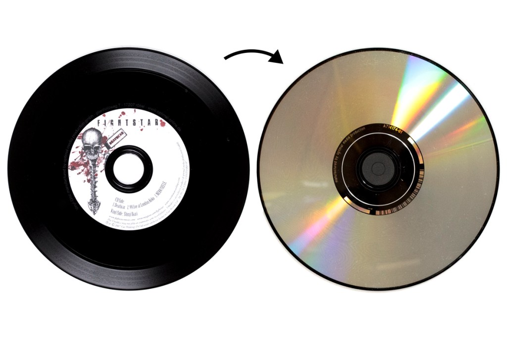 Inserito in un lettore CD, hai un album intero. Usandolo (con l’apposito adattatore per il foro centrale) in un giradischi ottenevi un altro degli antichi “dischi di dimensioni ridotte” dalla durata di circa tre minuti, praticamente un singolo su vinile incollato sul retro di un CD Audio.