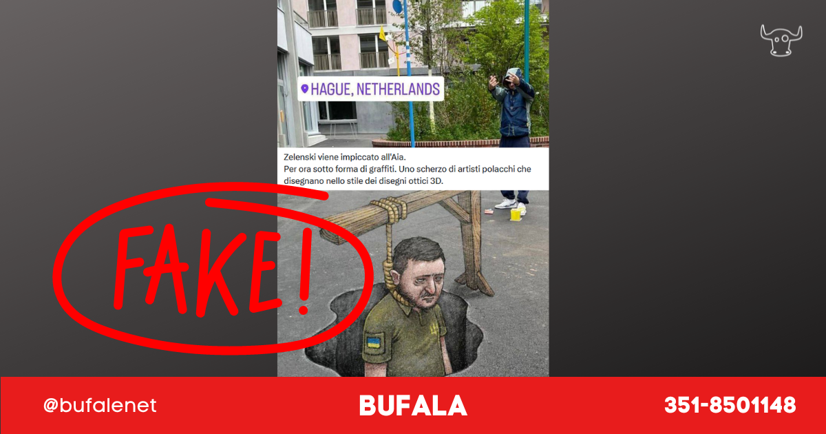 Le fonti russe inventano un falso graffito di Zelensky impiccato di falsi madonnari