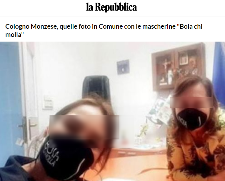 È dunque vera la notizia delle mascherine “Boia chi molla” indossate da una giornalista e dal vicesindaco di Cologno Monzese in alcuni selfie messi in rete e poi ritirati.